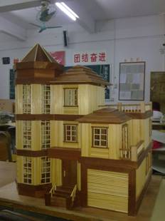 这座房屋模型尽管面积只有一张小课桌大小,但会客厅、主卧、厨房……一应俱全,甚至屋顶灯能发光、门闩能使用。