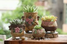"玉蝶"、"虹之玉"、"翡翠珠"、"生石花"、"玉露"、"露娜莲"、"静夜"这些文艺又清新的名字属于一些小巧精美的"多肉植物"。这些"美貌"而又文艺气息浓郁的植物搭配上可爱的花盆和"萌"态十足的小道具,算得上是最近植物界的新宠。