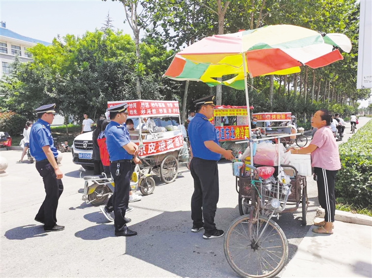 炎炎夏日,酷暑难当。7月6日临近午时,牡丹区综合行政执法大队五中队中队长吴建彪带领队员,再次来到其负责的牡丹区长城学校片区进行市容环境治理。“高考期间不要再来了,这次考试是关系孩子一生的大事,大家要好好配合。”面对流动摊贩,吴建彪耐心劝说道。