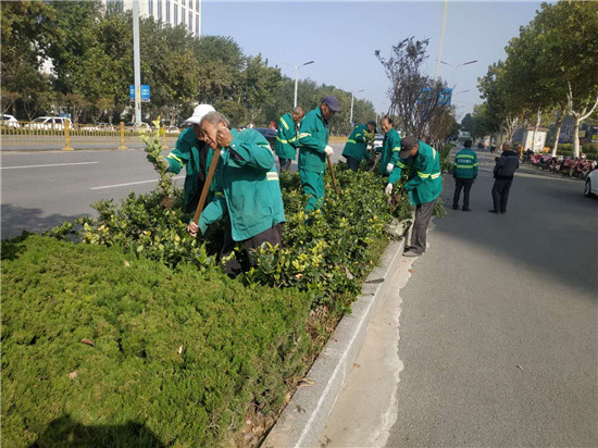 10月19日,菏泽开发区园林处的工人正在紧张有序地工作,辖区内的公园和主要街道呈现出热火朝天的繁忙景象。园林工人在市长江路、和平路等路段栽植了麦冬、石楠,在天香公园、新天地公园、林荫广场等地栽植了雪松、月季等,在市南京路、上海路等路段栽植了樱花树和木瓜树。