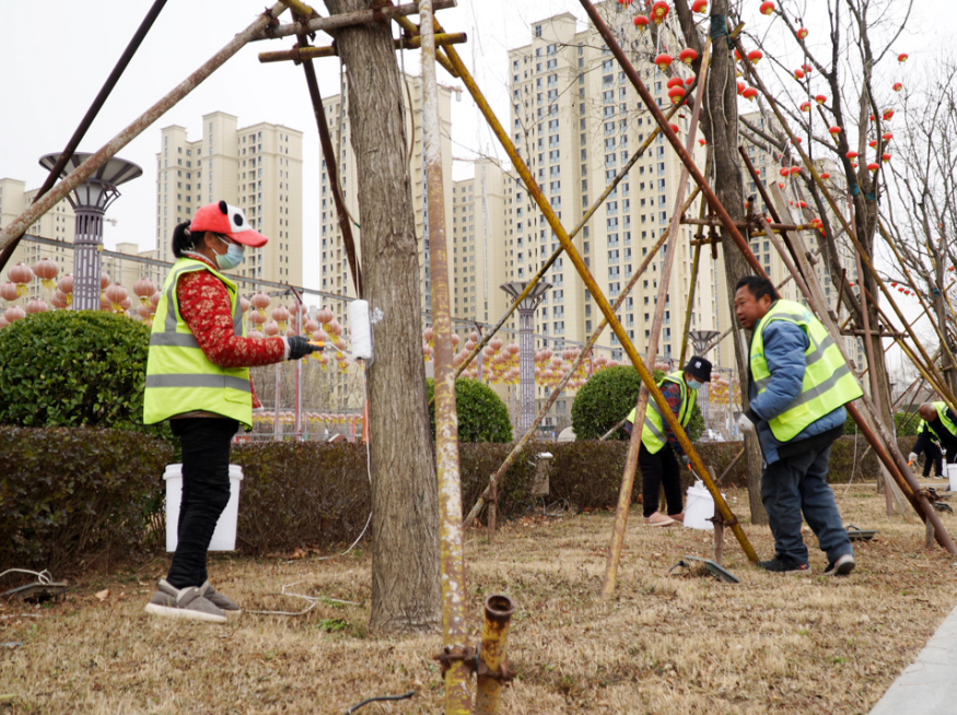 为树木“刷白”  为城市添“暖”
