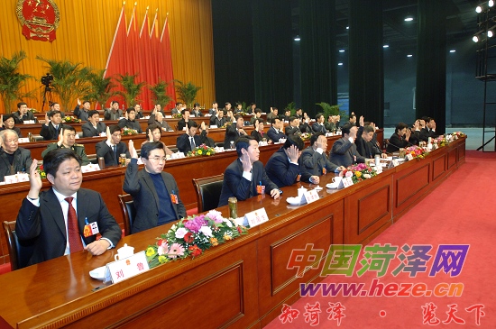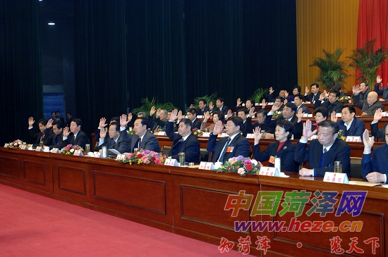市十七届人大三次会议在中共菏泽市委和大会主席团的领导下,经过全体代表和与会同志的共同努力,圆满完成了预定的各项议程。会议期间,始终洋溢着讲大局、讲纪律、讲团结、讲发展的良好氛围,是一次解放思想、凝聚力量的大会,是一次民主求实、团结奋进的大会。会议号召,更加紧密地团结在以胡锦涛同志为总书记的党中央周围,高举中国特色社会主义理论伟大旗帜,全面贯彻落实科学发展观,解放思想,真抓实干,团结一心,顽强拼搏,为实现菏泽经济社会的科学发展、和谐发展、跨越发展、更好更快发展而努力奋斗!