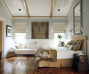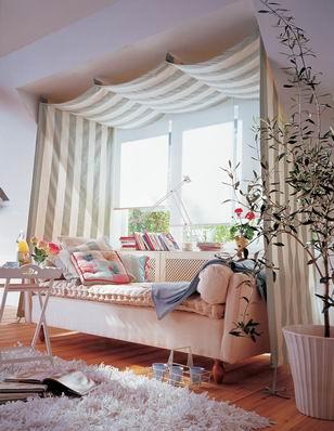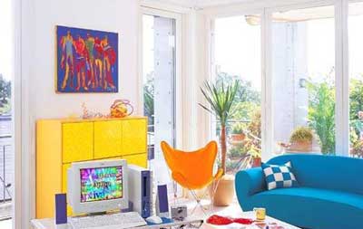 颜色能在一定程度上改变人们对房间形状的感觉。例如冷色可使较低的天花板看上去变高,使狭窄的房间变宽。在房间远端墙上用深色度的颜色,会使那堵墙产生前移的效果。 |