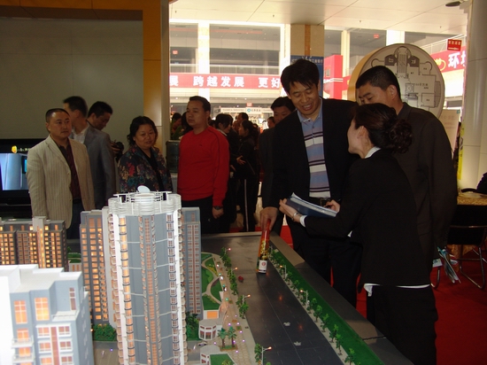 昨日,在中国林展馆举行的住博会上,市民在参观展示的楼盘。由市政府主办,市房管局、市城市开发办承办2009菏泽住宅与房地产业博览会4月11日开幕。本届住博会以“安居和谐、科学发展”为主题,为期四天。截至昨日共接待群众近20万人次,受理咨询十余万人次,现场售房近百套,意向购房三千余套。 孟 冰 天宇 摄