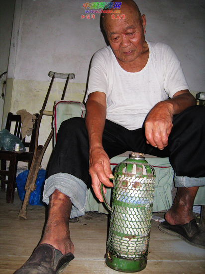原来,这个暖瓶是王兆勤老人33岁时买的,因为年代太久远,他早已记不清花了多少钱。但老人仍清楚地记得,刚买来时,绿色的暖瓶上面用红漆印着几个大字:鼓足干劲,力争上游,超英赶美。当时正值“大跃进”刚开始,家家户户都干劲十足,每天炼钢、生产,忙得热火朝天,很多人汗流浃背之后,舀起一瓢凉水就喝,因此拉肚子的人很多。当时的王兆勤还是个壮小伙,也因此拉了两回肚子,于是就让妻子每天烧好一壶水,他带到炼钢厂,供大家饮用。