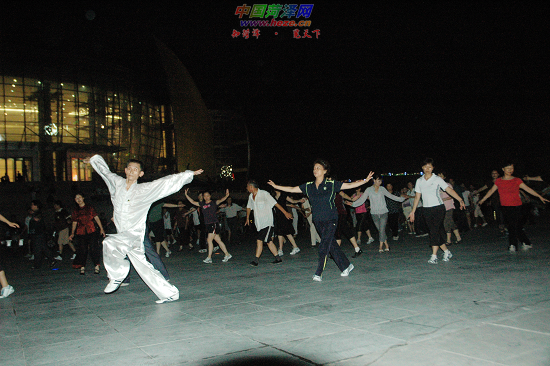 耳边响起一阵优美的旋律,上百人跳起了健美操。随着音乐,扭动起来,既能锻炼身体又放松心情。里三层外三层的围观者,也受到他们的感染,下意识地扭动着身体。在广场上,踢毽子的、打羽毛球的更是随处可见,人们都在用自己的方式享受着快乐的夜生活。