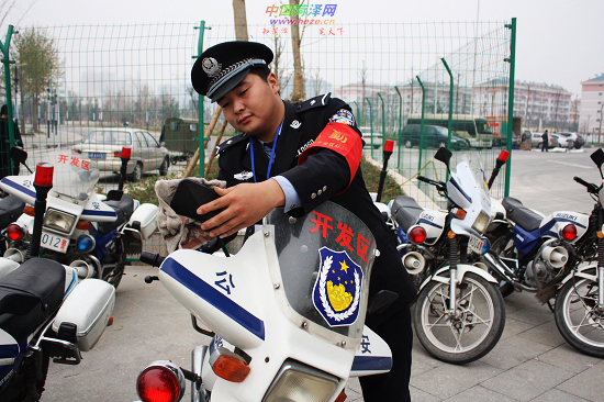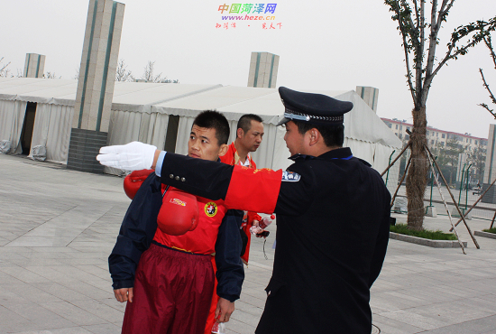 中国菏泽网消息 目前,在菏泽演武楼、大剧院周边总能看到有民警在不停地巡逻,他们就是市公安局开发区分局治安大队行动中队的队员。其实,在菏泽大剧院建好之前他们就被调来执勤,负责菏泽大剧院、演武楼、牡丹广场及周边的安保工作,随着全运会的临近,他们更加忙碌。