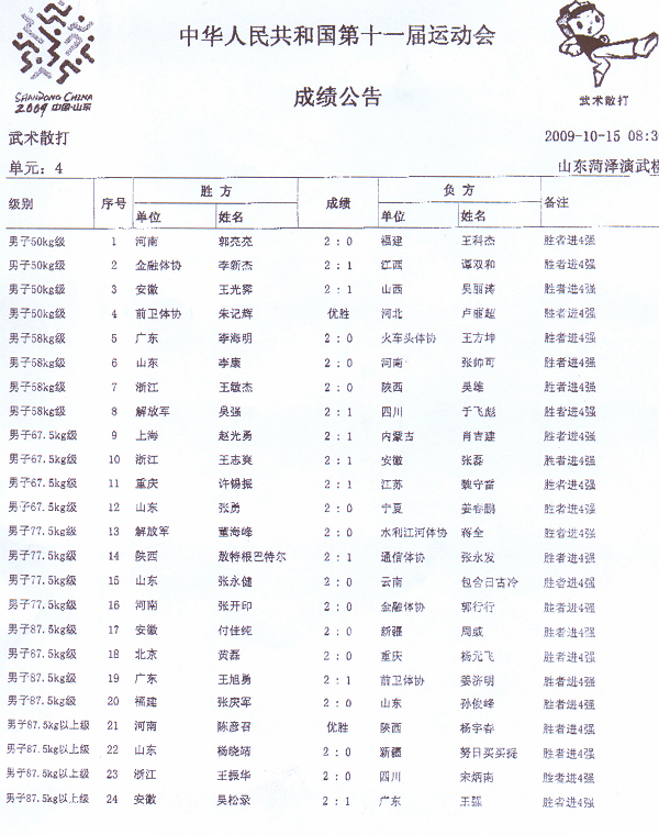 10月15日上午比赛成绩公告 ——中国菏泽网