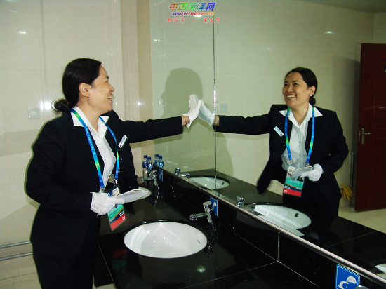 “人虽然多,每个人的工作量却非常大,一天下来总是累得腰酸背疼,但能为全运会服务我们心里很高兴。亲戚邻居都非常羡慕我,经常向我打听这里的情况。”保洁员吴桂梅颇有些自豪地对记者说。