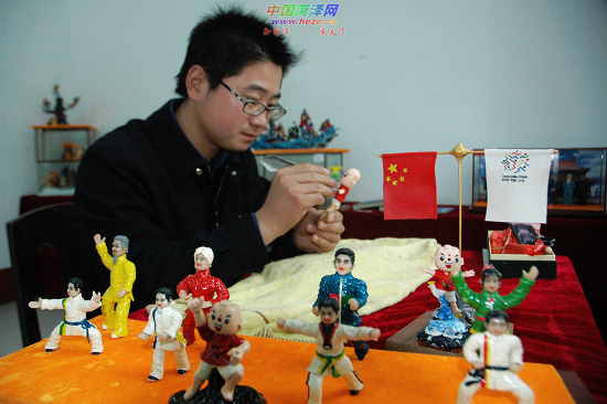中国菏泽网消息 “这是我昨天刚捏的全运会吉祥物。”10月14日上午,记者刚走进牡丹区马岭岗镇穆李村李震报的家,他就向记者展示了自己的最新作品。“十一运在菏泽设赛场,是咱菏泽的骄傲,作为一名菏泽人,就应该为这次盛会出一份力。”李震报说。