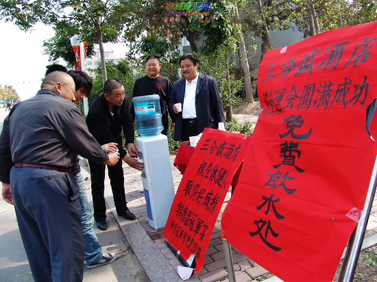 十一运武术散打比赛在菏泽开赛后,与菏泽大剧院、演武楼一路之隔的三合盛大酒店向观看比赛的观众和全运会执勤人员提供免费饮水服务。该酒店还特别推出冠军宴,获得十一运武术散打比赛金牌的运动员可免费就餐。