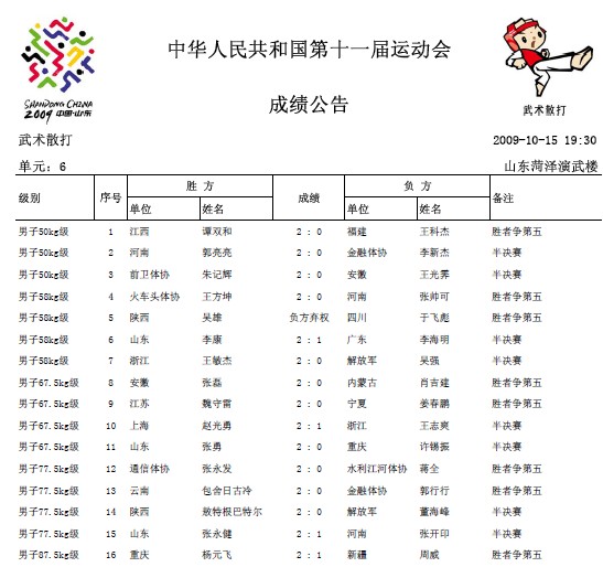 10月15日晚上比赛成绩公告 ——中国菏泽网