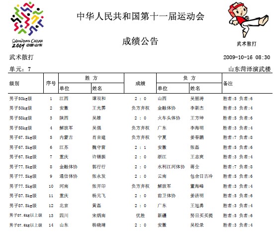10月16日上午比赛成绩公告 ——中国菏泽网