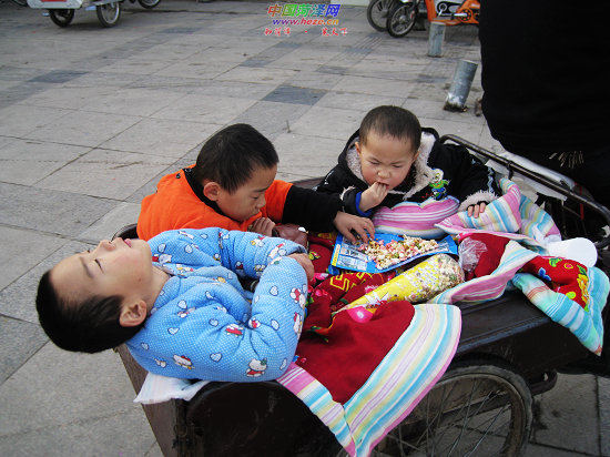 “哥哥,别动。”小哥俩将爆米花放在哥哥身上,狼吞虎咽地吃了起来。12月3日,记者刘锦拍摄于菏泽牡丹商业广场。