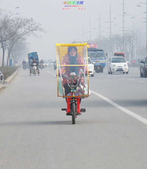 骑上安装着小车棚的电动车,不仅可以阻挡风寒,而且与众不同。12月2日,记者刘锦拍摄于市长江路。