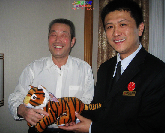 19日上午,花都大酒店工作人员为一位政协委员赠送工艺品老虎。为营造温馨的工作休息环境,花都大酒店为入驻该酒店的部分政协委员赠送了工艺品老虎。