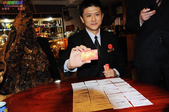 19日上午,参加市政协十三届三次会议的部分政协委员入住菏泽花都大酒店。该酒店员工在提供热情服务的同时,将专门设计的建言卡片交给政协委员,为菏泽的发展建言献策。图为酒店工作人员展示“我向委员进一言”卡片。