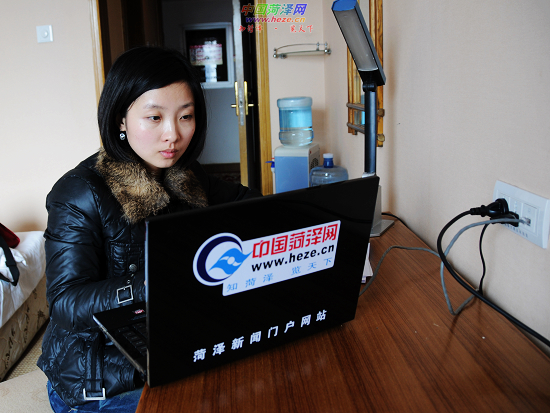 1月21日,参加两会采访工作的中国菏泽网记者正在驻地利用便携电脑向报社发回稿件。据了解,此次我市两会期间,中国菏泽网不仅派出精兵强将,更将便携电脑、无线网络设备等装备给一线记者,方便记者迅速、准确的为广大网民提供两会有关信息。