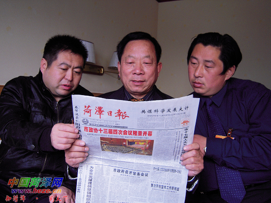 1月21日,曹县代表团的人大代表田永亮、李宪君、冯中山在宾馆内,抓紧时间阅读当天的《菏泽日报》,就当前群众关心问题进行讨论。“两会”期间,《菏泽日报》拿出专门版面,开设多个专栏,在第一时间内将大会盛况传达到千家万户。