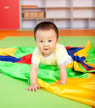 在生活中融合运动,让宝宝不知不觉爱上运动。例如与宝宝玩寻宝、捉迷藏的动作,宝宝在寻找途中,会运用他的肢体移动位置,不管是爬、磨蹭还是走,都可以让他充分发展体能,孩子也会玩得很高兴。在游戏中让宝宝更健康更强壮吧!
