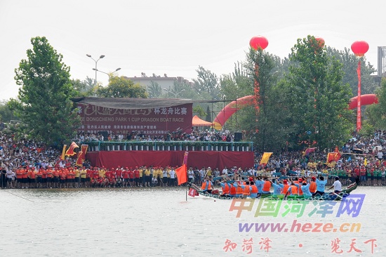 来自菏泽市各界共20支男子代表队、4支女子代表队参加了比赛,比赛为标准龙舟600米直道竞速。在数万观众的呐喊助威声中,通过激烈角逐,最终曹州武术馆、市城市管理局、牡丹区环保局科研所三支代表队分获前三名,女子组桂冠由银联担保代表队摘获。