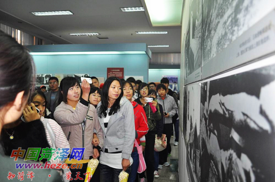 党的十八大即将召开,越来越多的参观者走进冀鲁豫边区革命纪念馆,重温党的光荣历史和丰功伟绩,增强爱国热情。冀鲁豫边区革命纪念馆副馆长陈鹏告诉记者,进入11月份以来,特别是刚刚过去的双休日,到纪念馆参观的群众明显增多。图为菏泽学院学生参观纪念馆。