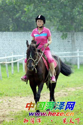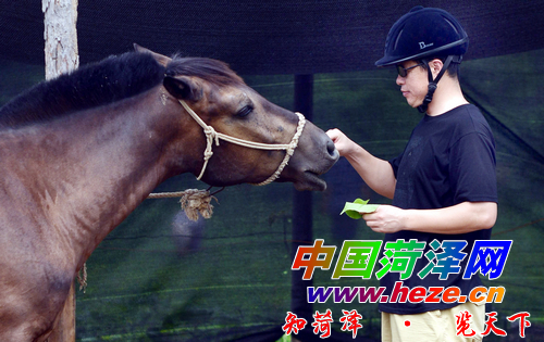 位于菏泽市城区东部的花城马术射箭俱乐部占地6万余平方米,拥有广阔的草场和林地。俱乐部马场有一条300多米的跑道,绿草如茵,正好飞驰。马场内几匹马身材高大,肩高过人,给人非常俊美有力的感觉。俱乐部马术教练人称老李哥,看到网友不敢靠近骏马,就指导网友先跟马儿说说话,喂喂草,增加熟悉度。很快,网友就在温顺的马儿面前消除了顾虑,跃跃欲试,轮番上马。