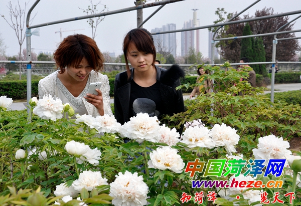 中国菏泽网消息(记者 张 啸)牡丹,菏泽最靓丽的名片。3月30日下午,曹州牡丹园内的景玉、粉荷、火炼金丹等品种已经盛开,几位游客征得花农同意后,进入大田内观赏拍照。目前大田内多数牡丹仍含羞遮面,但清明“小长假”期间,长枝红、春枣、胡蓝、粉中冠等十余品种牡丹将盛开,让来菏游客一饱眼福。牡丹专家预计,一周后进入牡丹花期,整个花期可持续到5月中下旬。