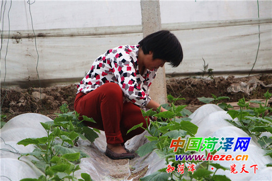 图二:成武县广通蔬菜种植合作社的蔬菜大棚内农民正在掐秧