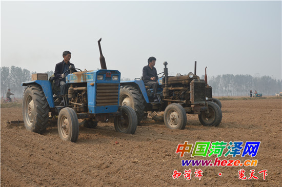 图三:成武县光华小麦种植专业合作社的农用拖拉机正在田间“秋种”