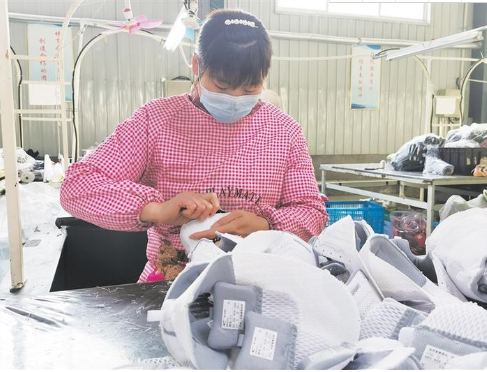 “我们是计件制,平时每个月能拿2000多元。”4月11日,牡丹区小留镇古恩鞋业扶贫车间内,正在工作的村民刘芳说。据悉,目前小留镇扶贫车间主要开展各种服装、鞋子等产品加工,吸纳家庭妇女1000余人就业,这些农村妇女变身工人成为家庭致富好帮手。 记者 李若生 摄