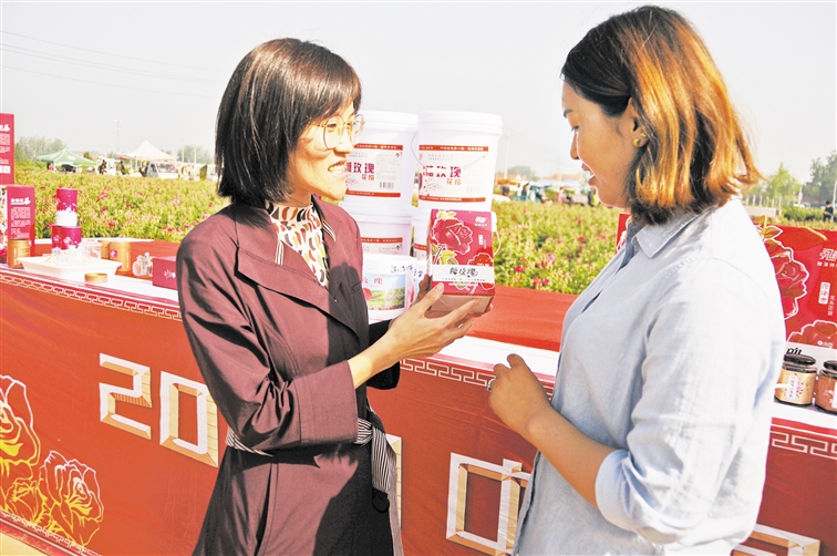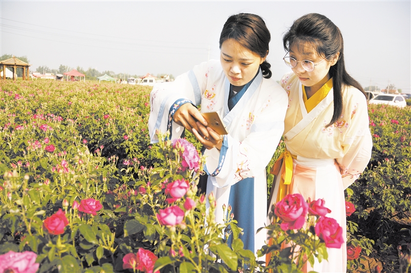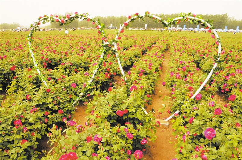 李铭对记者说:“我镇建有万亩玫瑰主园区一处,玫瑰高端连栋温室一处,育有110多个优良玫瑰品种,是我国长江以北唯一的鲜切花玫瑰大棚培育基地。从事玫瑰产业人员1.3万余人,从业农户4000多户,种植面积达1.3万亩,亩均收益8000元以上,年加工各类玫瑰产品9000吨,销售收入2.8亿元。”