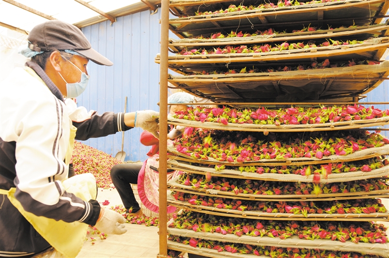 陪同采访的镇政府工作人员皇甫燕飞告诉记者:“区和镇领导牵线搭钱,帮助全镇玫瑰种植户与稻香村食品公司签订了合同,有多少玫瑰花就收多少,形成了企业连基地,基地连农户的产业链,消除了村民的后顾之忧。”