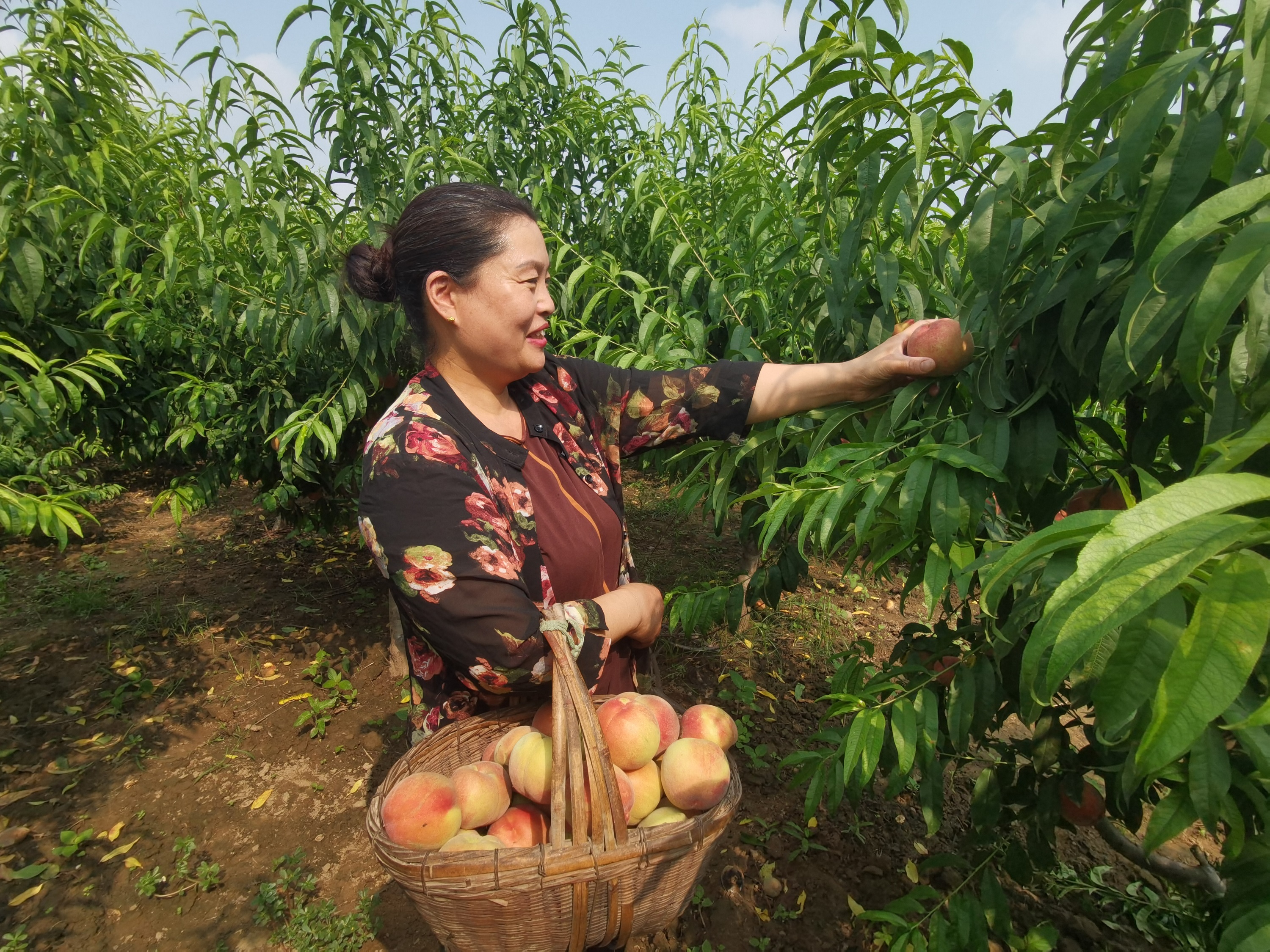 6月21日,定陶区天中街道办事处孔书庄村的桃园里,村民张凤兰正在忙着采摘美味多汁的“五月白”水蜜桃。“种一亩桃子的收成是种庄稼的好几倍,我们就靠着这些脱贫致富呢!”张凤兰边采摘边说。孔书庄村共有农户500户,其中种果树的就达200多户。一亩果林收益在1.5万-2万之间,村民们依靠种植果树脱了贫致了富。通讯员 吴华杰 记者 刘卫国 摄