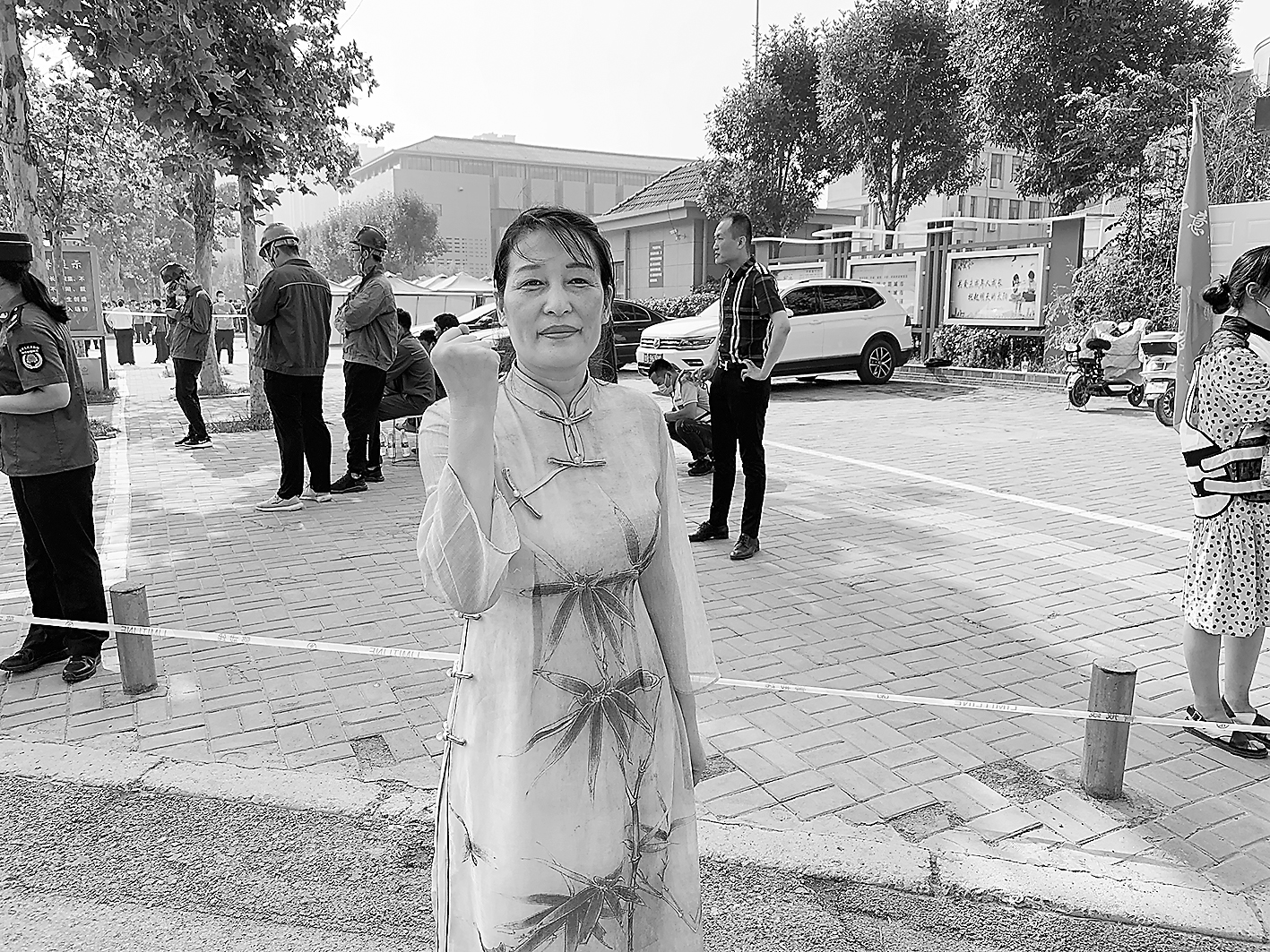 7月8日下午,在牡丹区二十一中教育集团长江路中学门口,吴艳华饱含深情地目送女儿走入考点,然后短暂停留便默默地离开了。