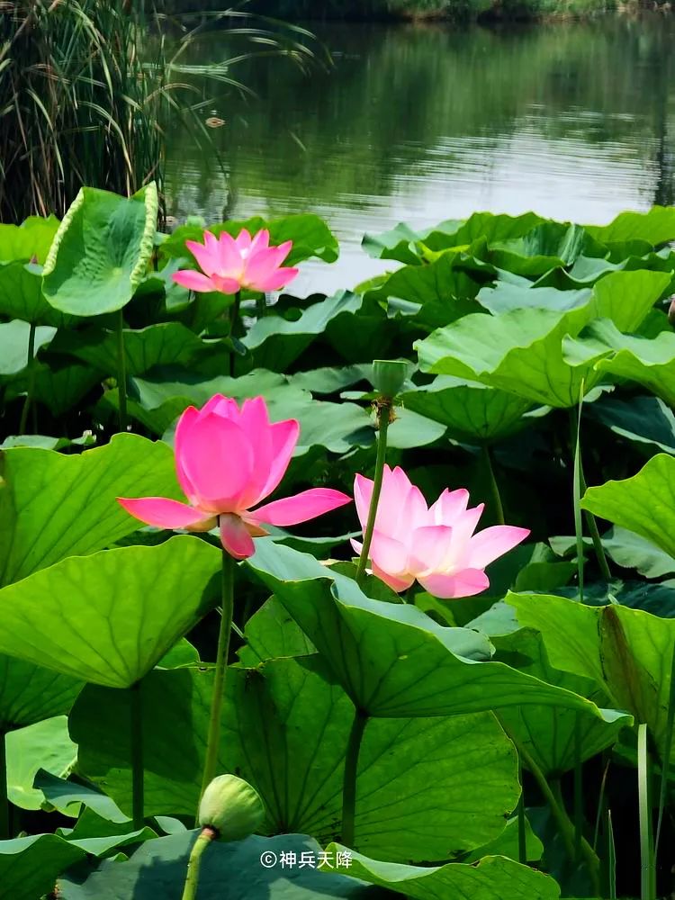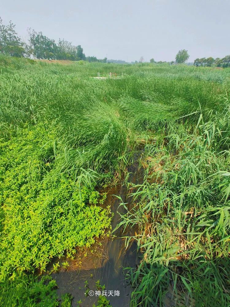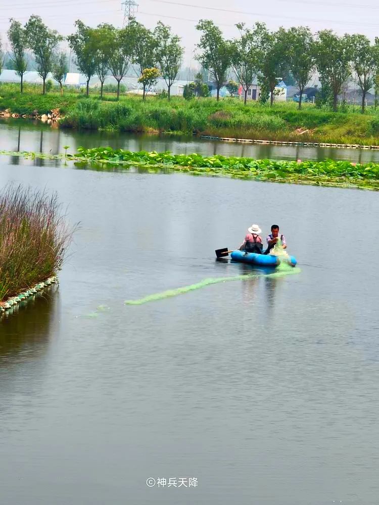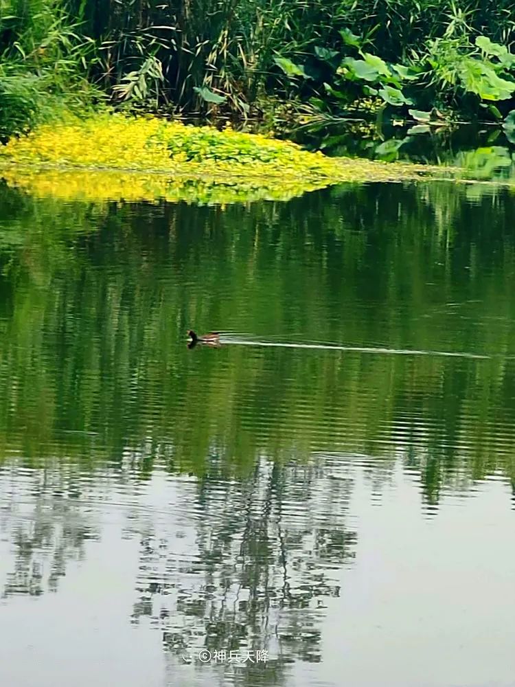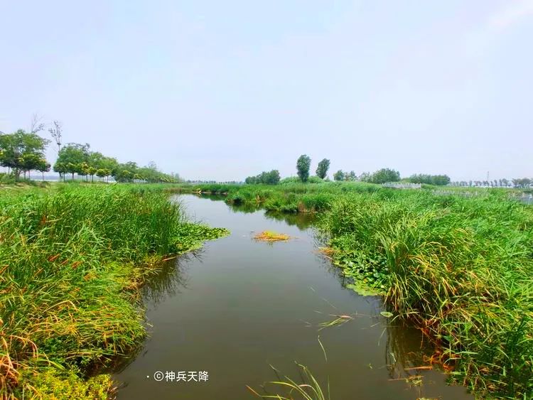 河水清明,芦苇、香蒲、荷花、浮萍等水生植物繁密茂盛,鹭鸶起落,野鸭弄波,游鱼戏水,风光宜人。