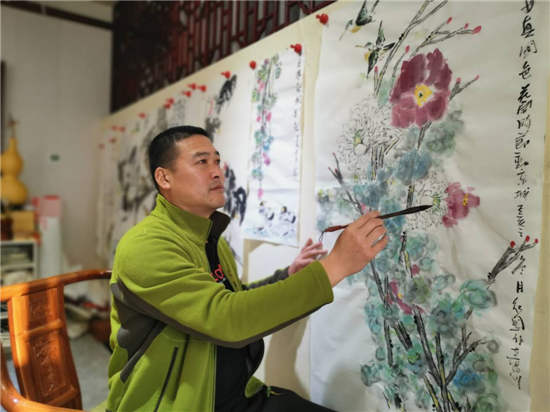 “花开盛世别样美,鸟鸣欢歌幸福来。”手持画笔的军旅画家李洪国站在刚刚完成的一幅《鸟语花香》画作前,微笑着对记者说,“大写意花鸟是对大自然美好事物的一种体现形式,在展现宏大的主题方面,的确有一定的局限,但作为画家,如果带着对党和国家的忠诚挚爱、带着对新时代新生活的真情感悟挥毫泼墨,一样可以画出盛世大气和幸福质感。”