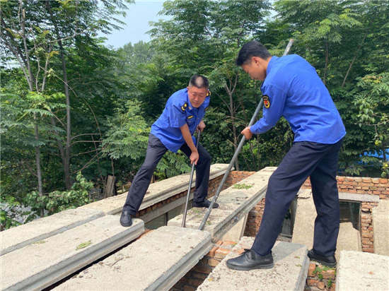7月28日,菏泽市城市管理局行政执法支队开发区大队丹阳中队中队长侯居敬,带领执法人员来到开发区丹阳办事处大屯社区,对耕地里的一处违章建筑进行依法拆除。