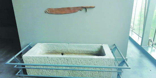 在单县湖西红色教育基地馆内展示的众多抗战文物中,一口硕大的石槽显得弥足珍贵。