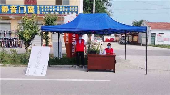 曹县青菏街道在辖区31个村庄、21个社区主要交通路口设立126处疫情防控点,由村(社区)的党员、干部、志愿者全天候值守,所有出入人员一律登记,并要求出示健康码、疫情接种码,同时测量体温,筑牢疫情防控屏障。 通讯员 臧怀生 摄