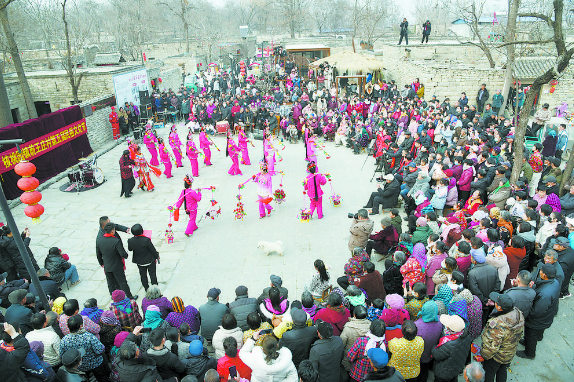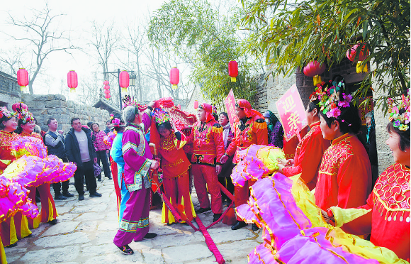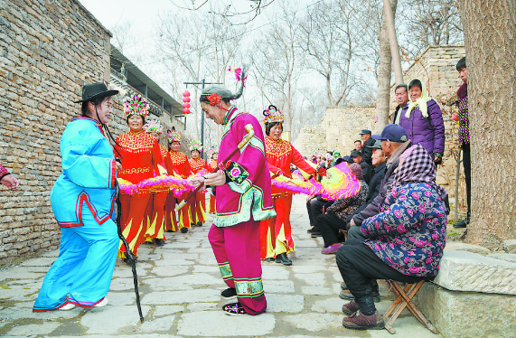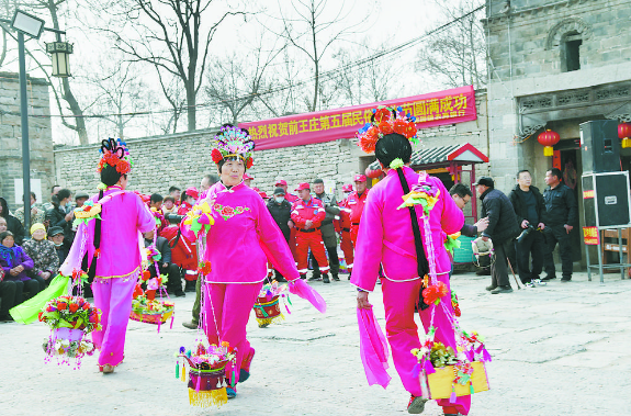 2月13日15时,巨野县核桃园镇前王庄村第五届民俗文化节在古村落中心广场拉开帷幕。演职人员都是本村村民,所有节目都由他们自编自导自演,有欢快祥和的大秧歌、有上下翻飞的花棍舞、有出神入化的担经舞、有诙谐幽默的抬花轿、有清脆悦耳的童声合唱、有国之精粹的武术表演,也有村里歌唱家的独唱,更精彩的是风趣幽默的抬花轿,将民俗文化节推向高潮,“嗨翻”元宵节,博得观众的阵阵掌声。