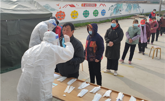 连日来,市开发区组织开展核酸检测工作,各街镇、社区、社区卫生服务站工作人员现场配合默契,检测工作有序推进。为加大服务力度,对于老弱病残等行动不便的特殊人群采取上门采样的方式,确保应检尽检,进一步筑牢疫情防控安全屏障。图为陈集镇核酸检测现场。