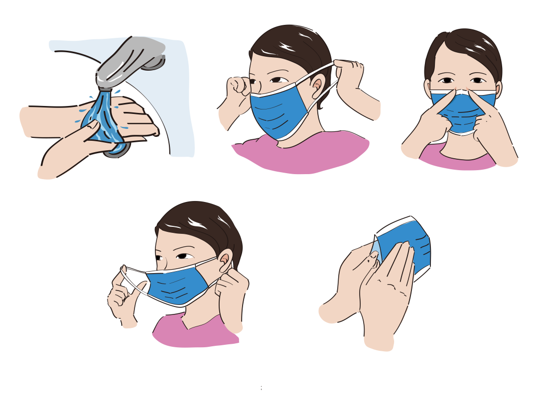 需重复使用的口罩在不使用时宜悬挂于清洁、干燥、通风处。