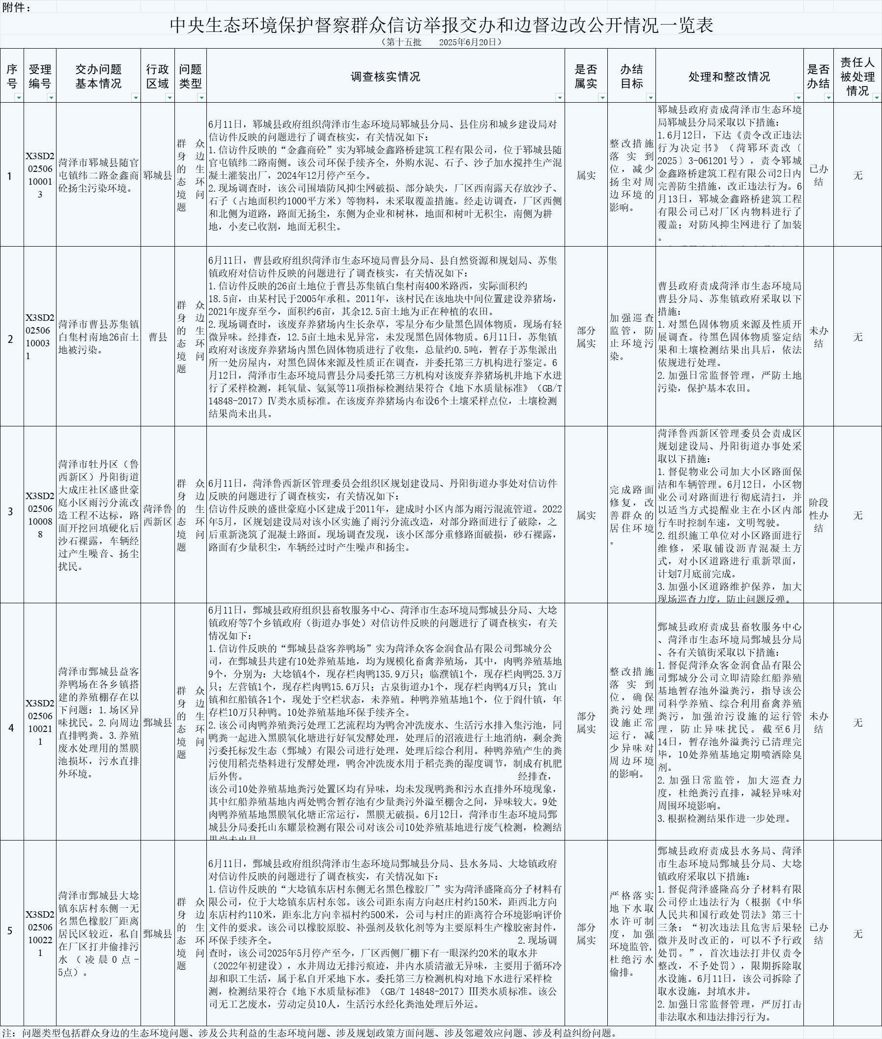 附件:中央生态环境保护督察群众信访举报转办和边督边改公开情况一览表(第十五批)